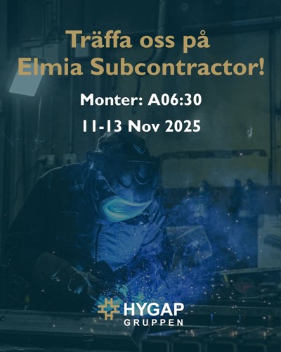 Den 11–13 november 2025 är det äntligen dags för Elmia Subcontractor – Sveriges största mässa för tillverkningsindustrin! I år hittar du oss på monter A06:30, där vi på Hygap tillsammans med Finnvedens Smide ser fram emot att träffa både nya och befintliga kunder, partners och branschkollegor. Kom förbi, säg hej och låt oss prata bearbetning i stål – ett område där vi har lång erfarenhet, bred kompetens och en stark passion för kvalitet.